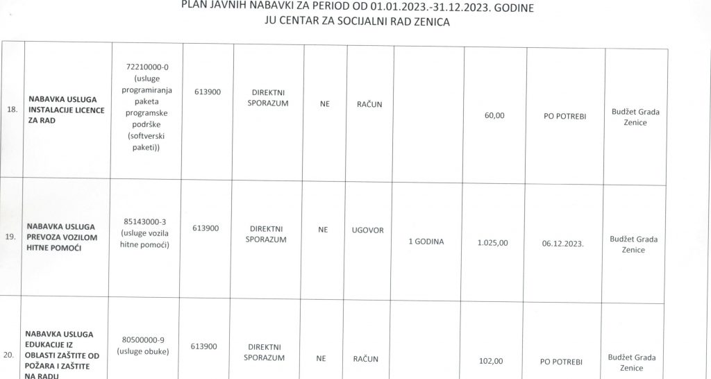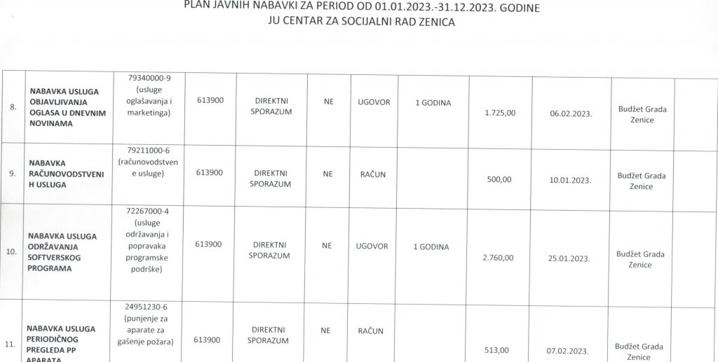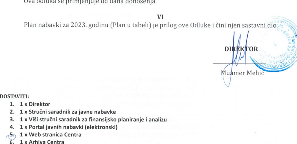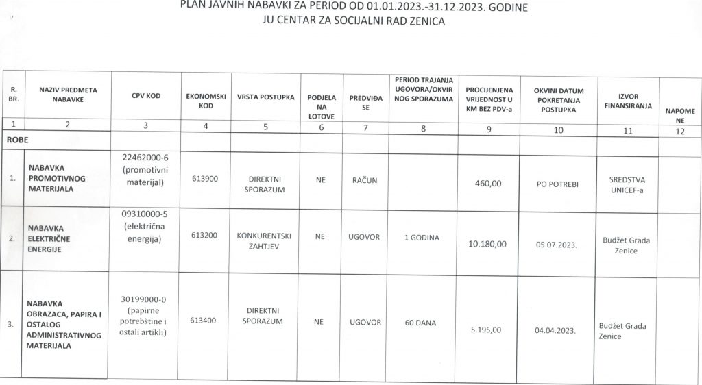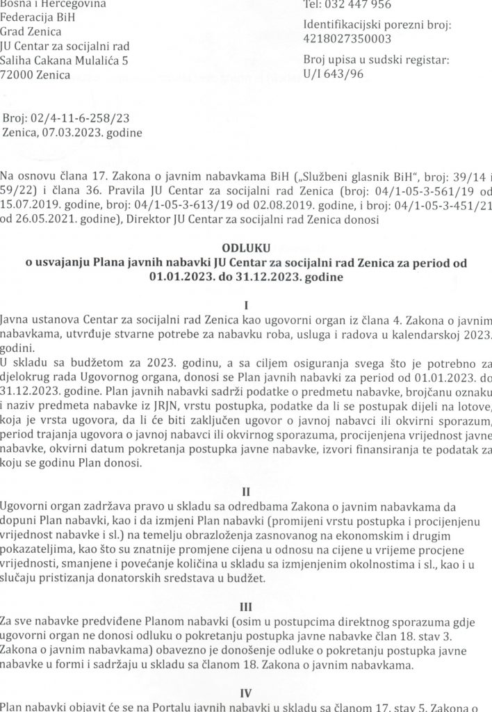 Odluka o usvajanju Plana javnih nabavki i Plan javnih nabavki za 2023. godinu