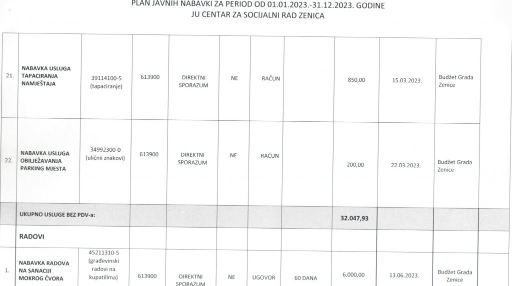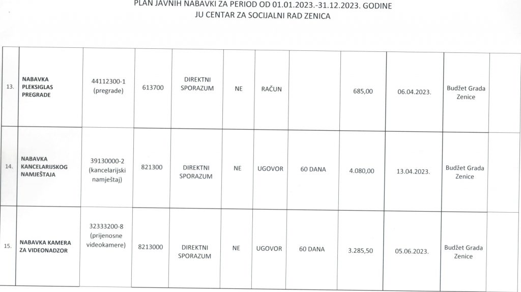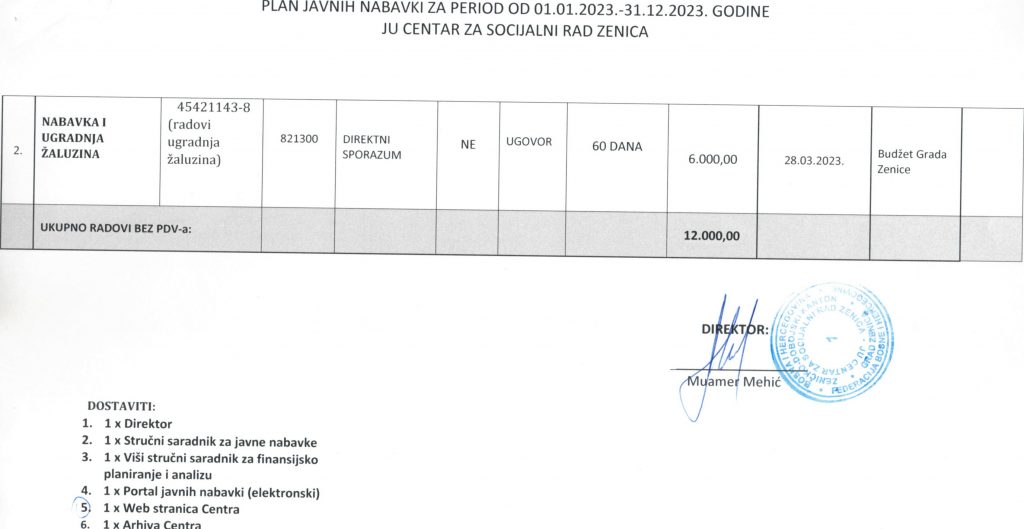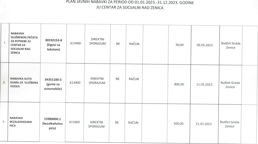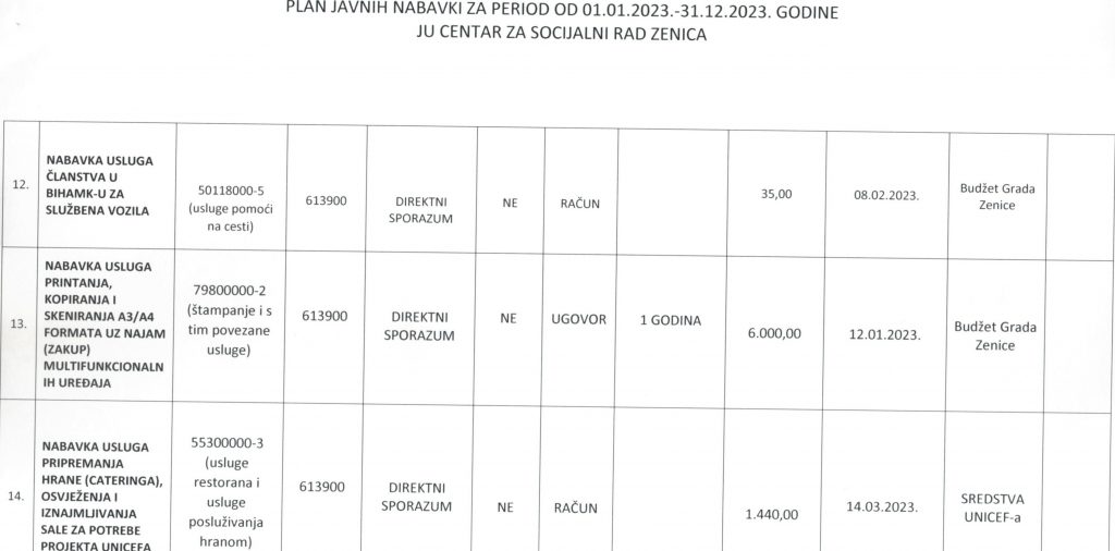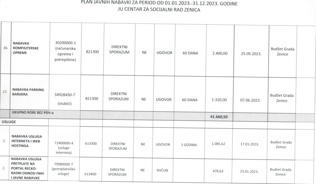 Odluka o usvajanju Plana javnih nabavki i Plan javnih nabavki za 2023. godinu