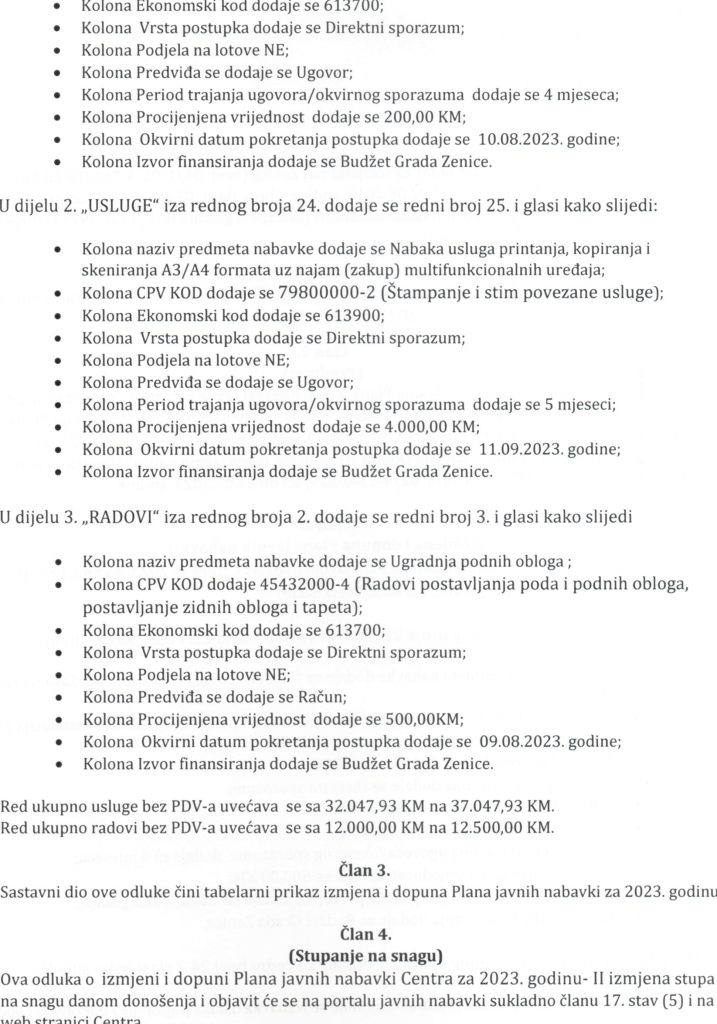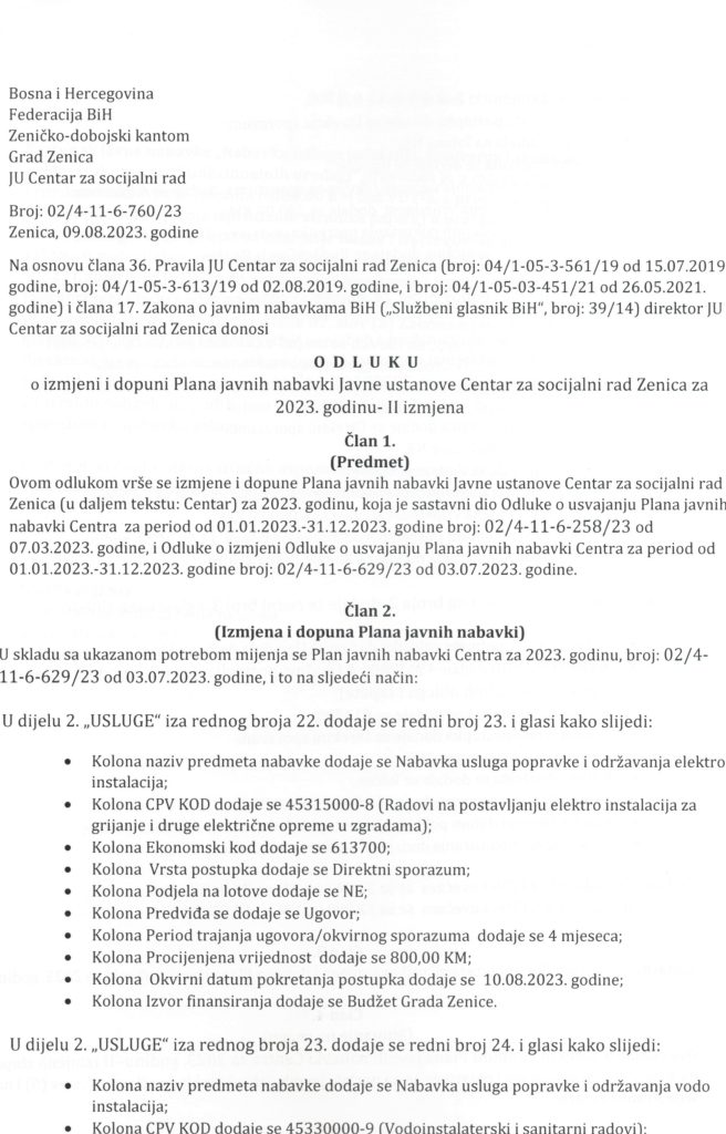 Odluka o II (drugoj) izmjeni i dopuni Plana javnih nabavki za 2023. godinu