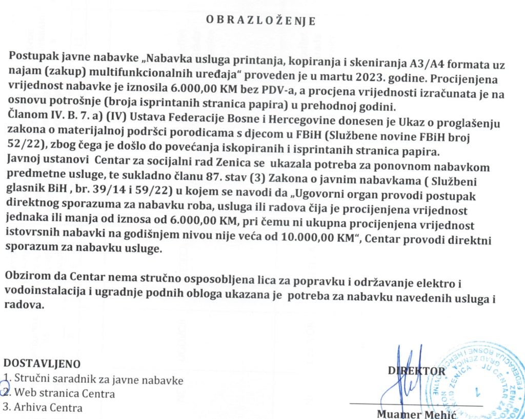 Odluka o izboru najpovoljnijeg ponuđača za nabavku usluga popravke i održavanja elektroinstalacija