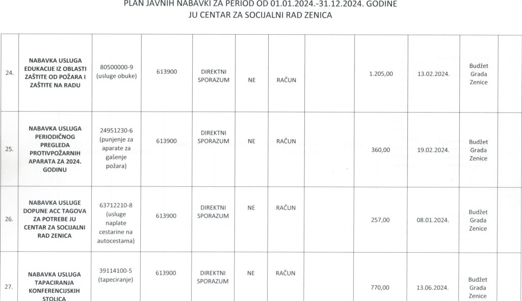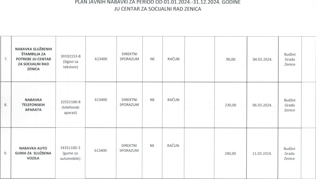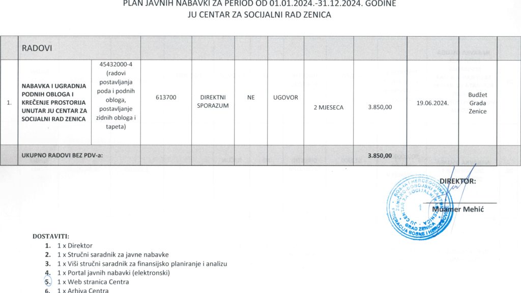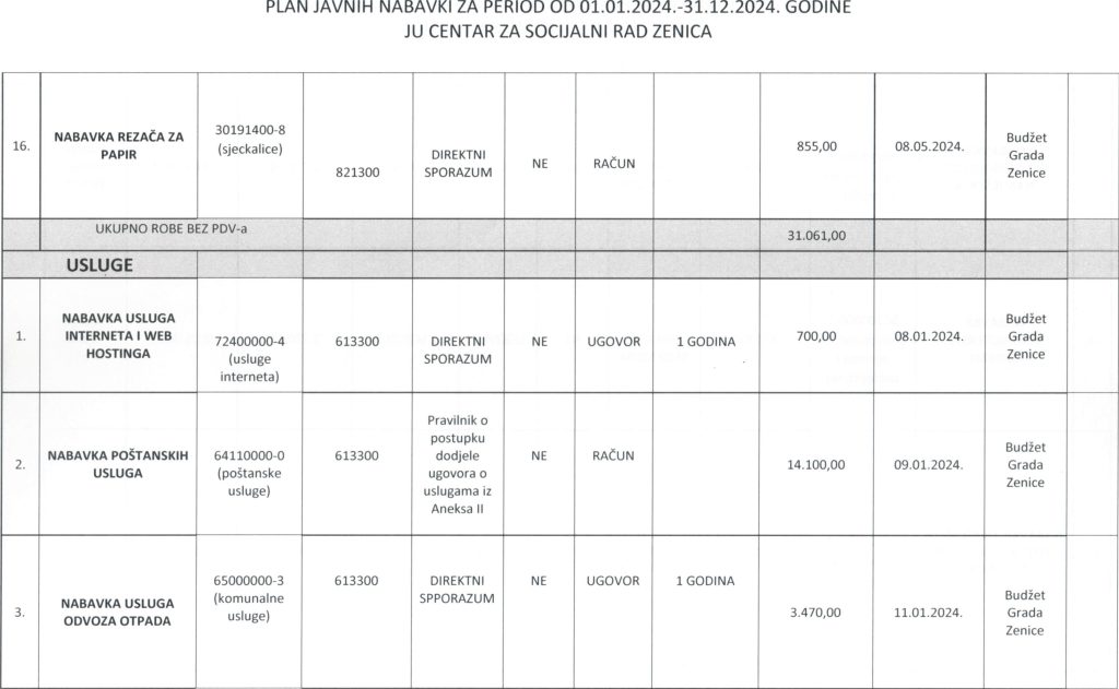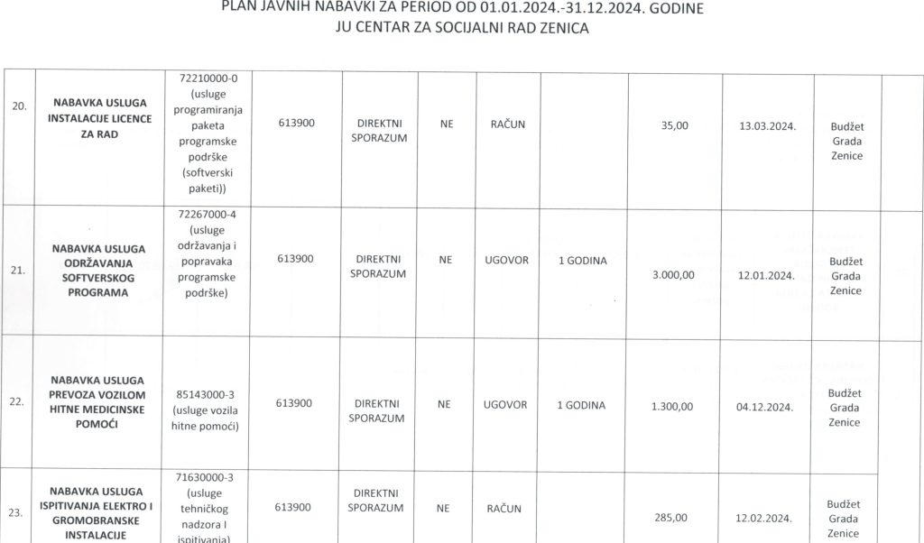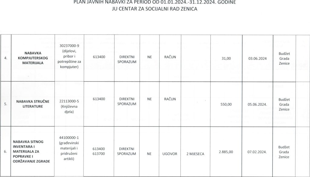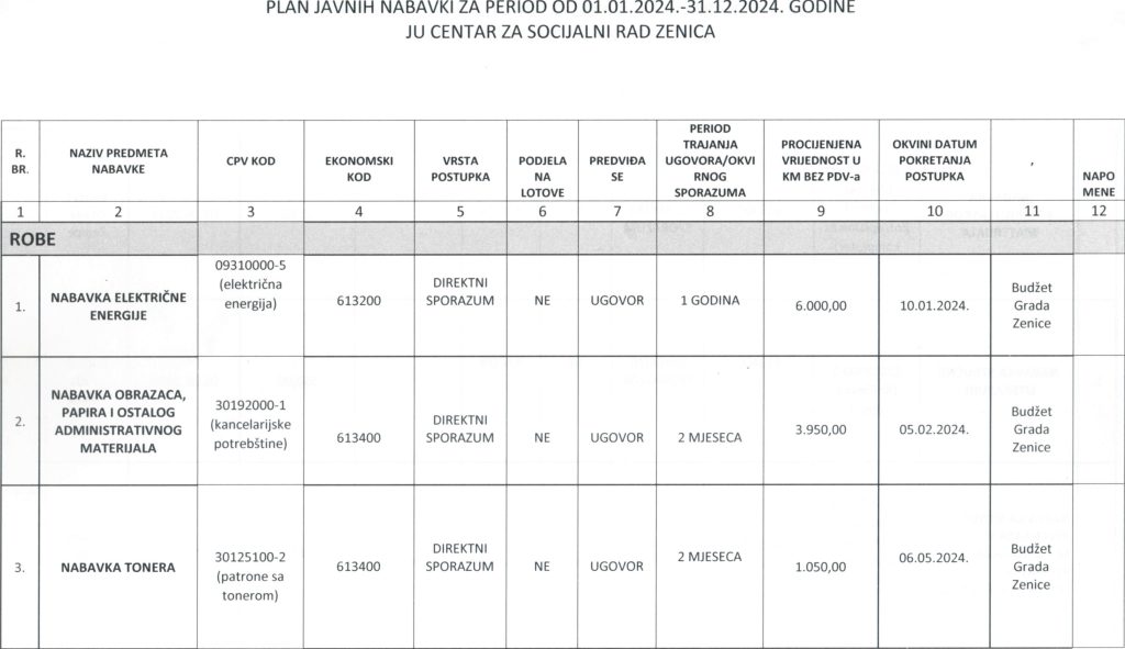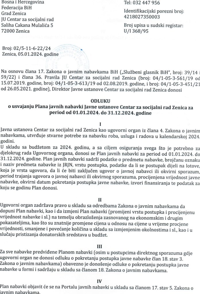 Plan javnih nabavki za 2024. godinu i Odluka o usvajanju Plana javnih nabavki za 2024. godinu