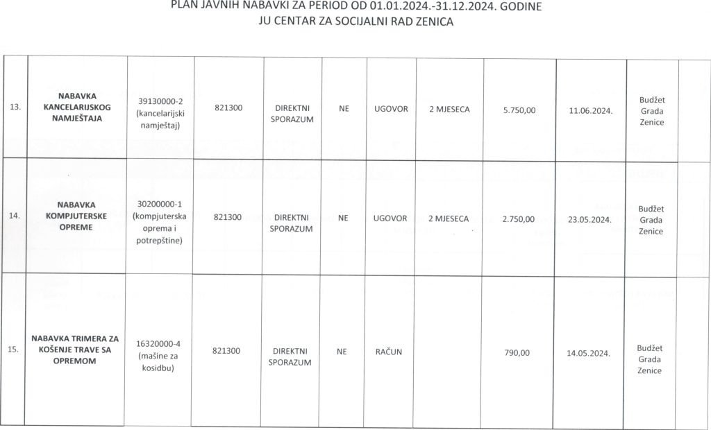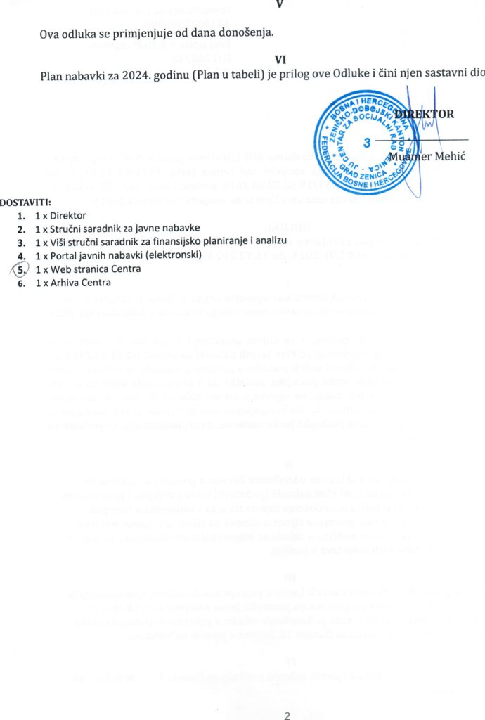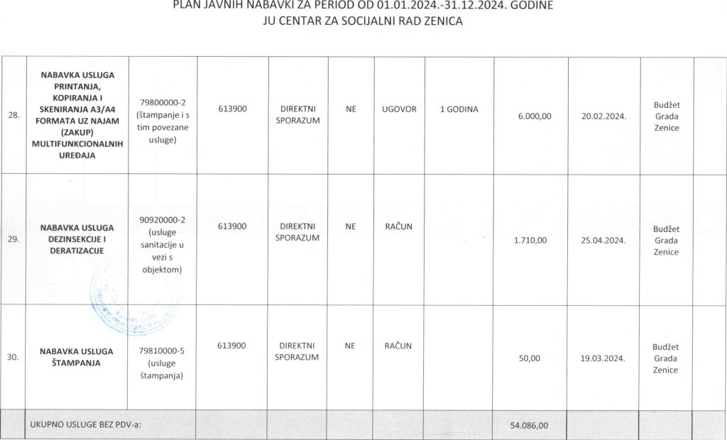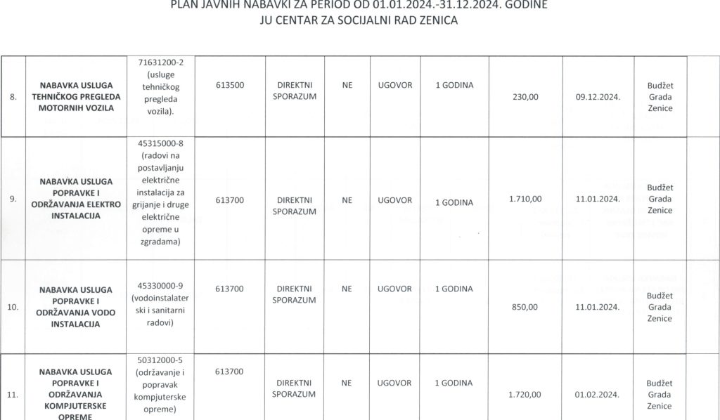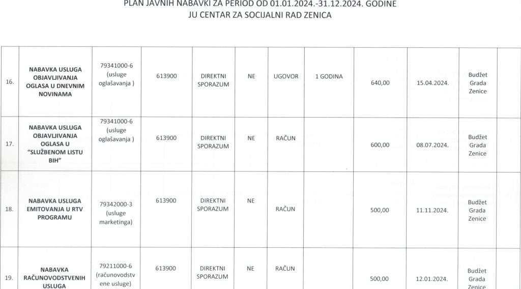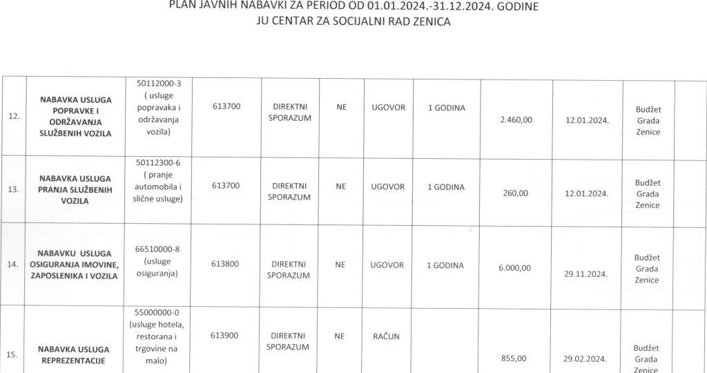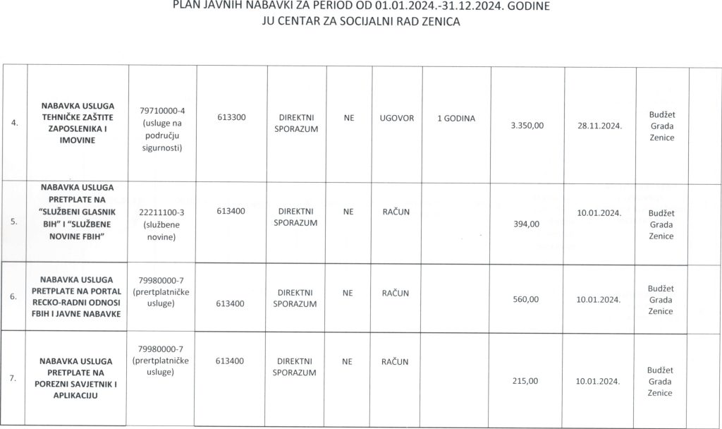 Plan javnih nabavki za 2024. godinu i Odluka o usvajanju Plana javnih nabavki za 2024. godinu