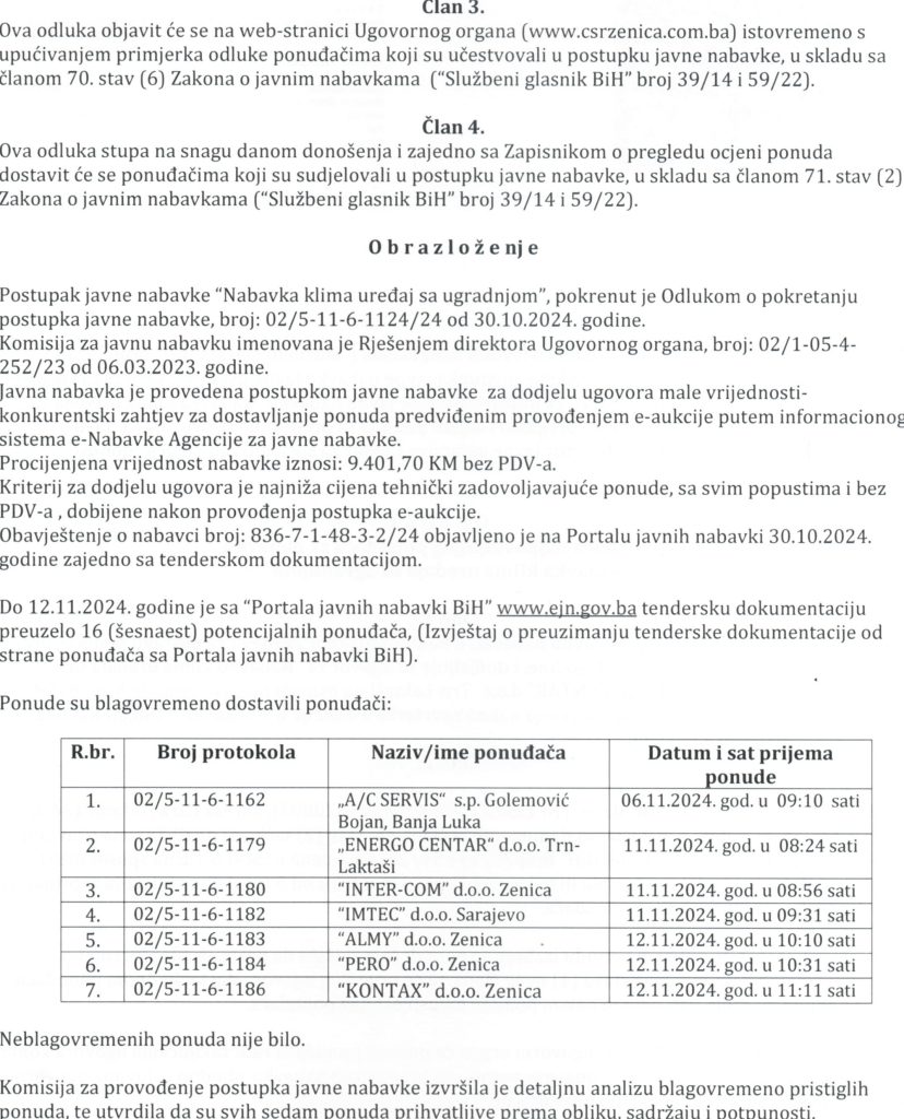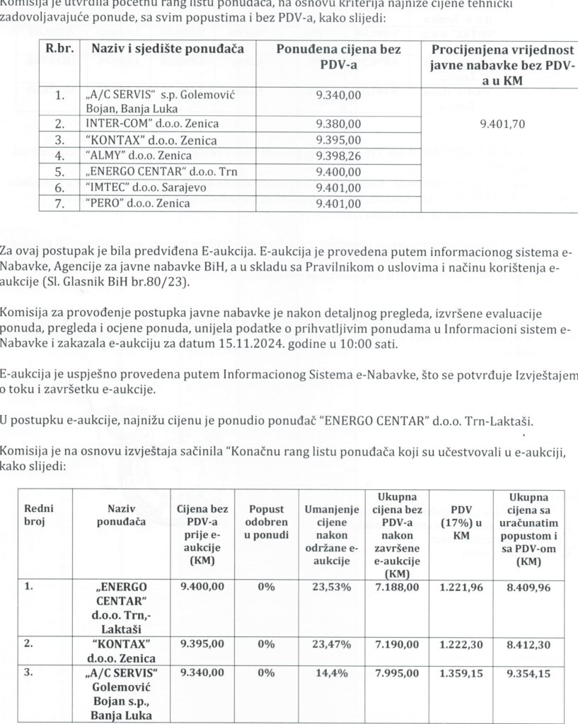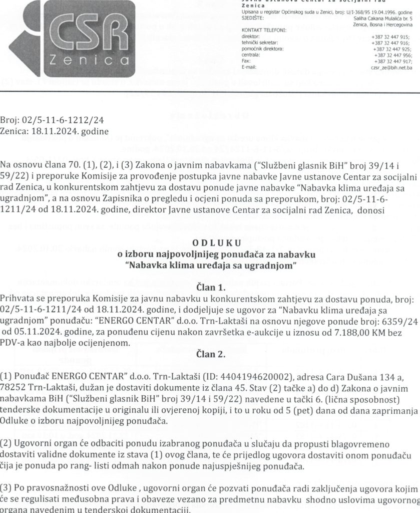 Posted on 18 Novembra, 202418 Novembra, 2024 ODLUKAo izboru najpovoljnijeg ponuđača za “Nabavka klima uređaja sa ugradnjom”