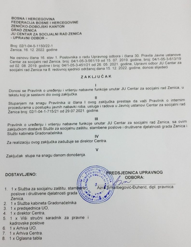 Odluka o izboru najpovoljnijeg ponuđača za nabavku računovodstvenih usluga